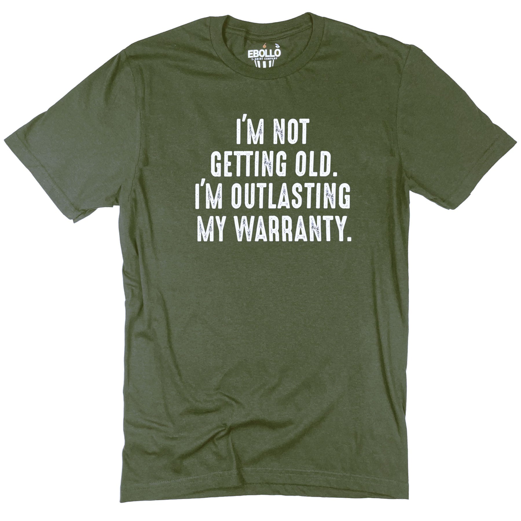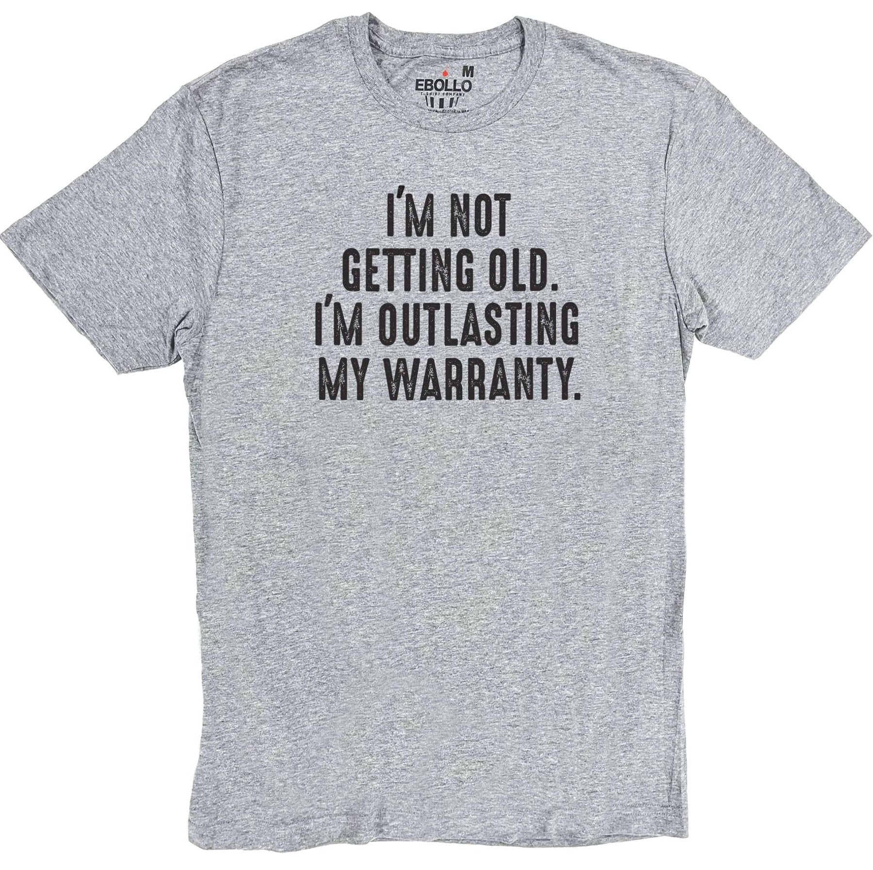 Get ready to make them laugh with this funny men’s T-shirt that reads “I’m Not Getting Old. I’m Outlasting My Warranty.”