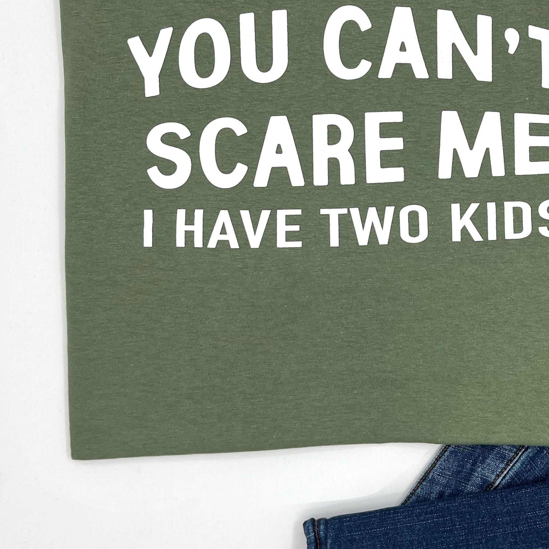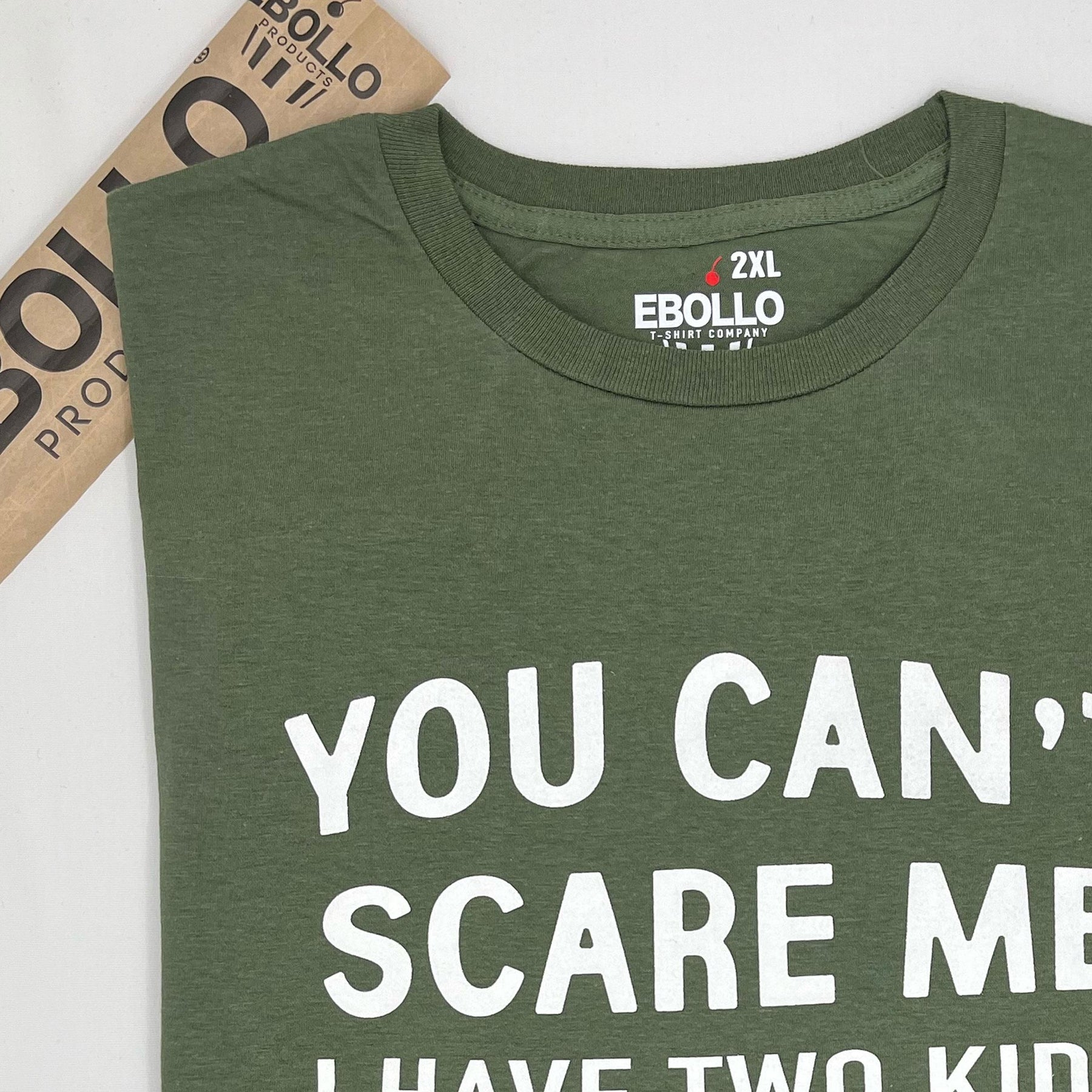 Celebrate fatherhood with our "You Can't Scare Me I Have Two Kids" Dad Shirt, a humorous take on the wild ride of parenting that makes an unforgettable Father's Day gift for the dad or husband in your life.