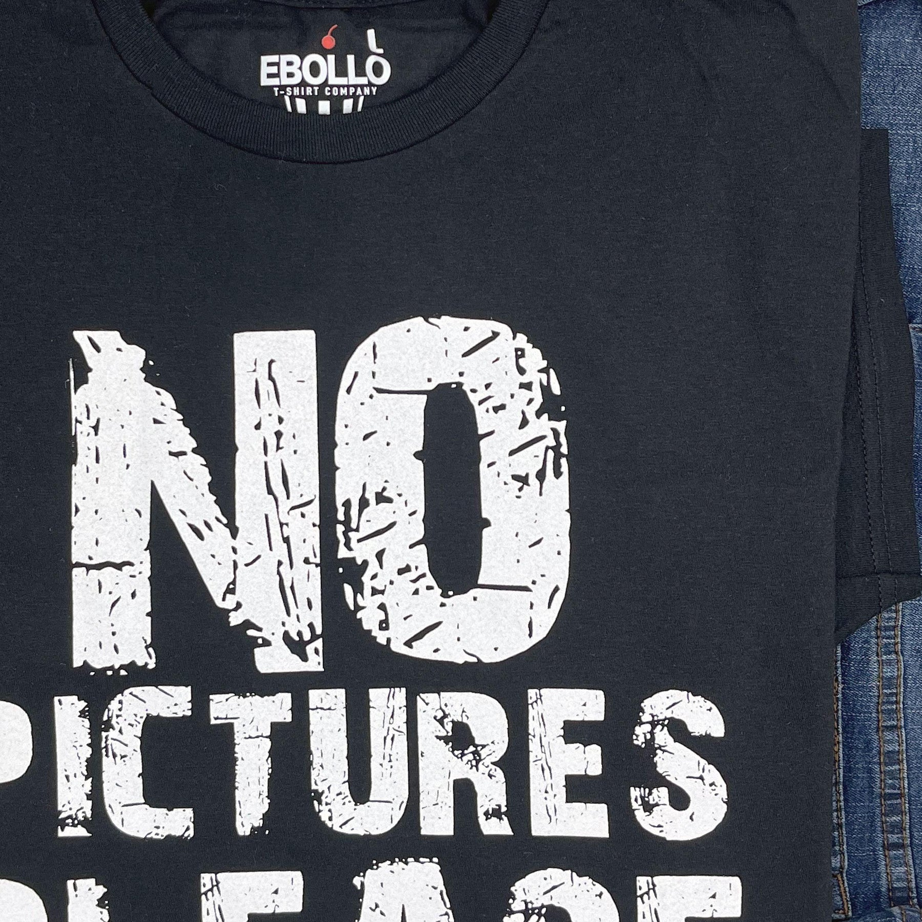 Get ready to spark laughs with our "NO Pictures PLEASE" shirt, the ultimate funny t-shirt for men that makes for a perfect gift for dads, husbands, and brothers alike!
